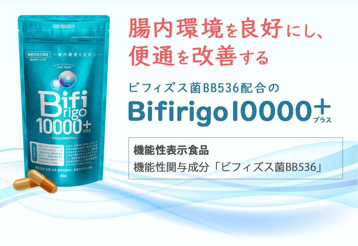 ビフィリゴ10000は機能性表示食品で、ビフィズス菌BB536を配合したサプリメント。