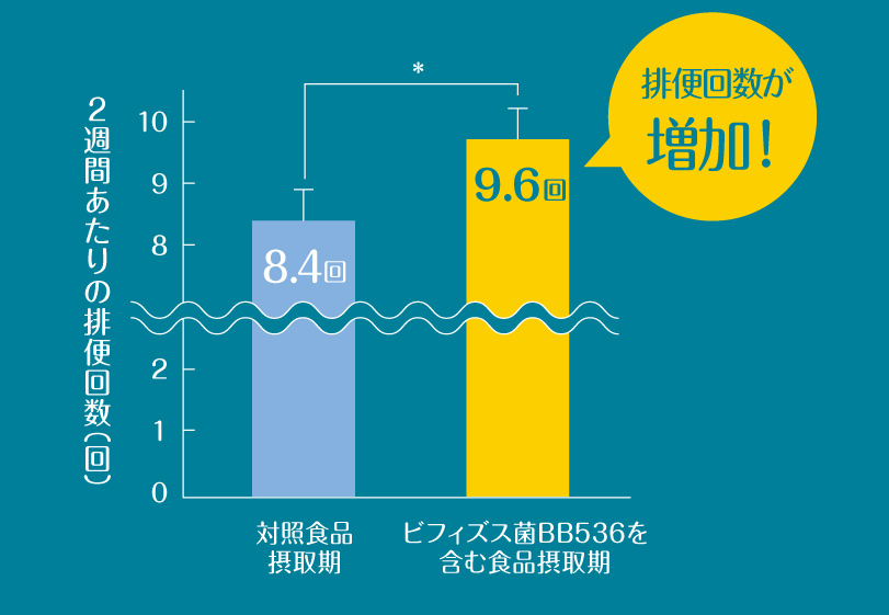 ビフィズス菌BB536を含む食品の摂取により、排便回数が有意に増加しました!