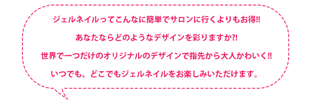 ジェルネイルキットがあれば、誰でも簡単にジェルネイルを楽しむ事ができます!
